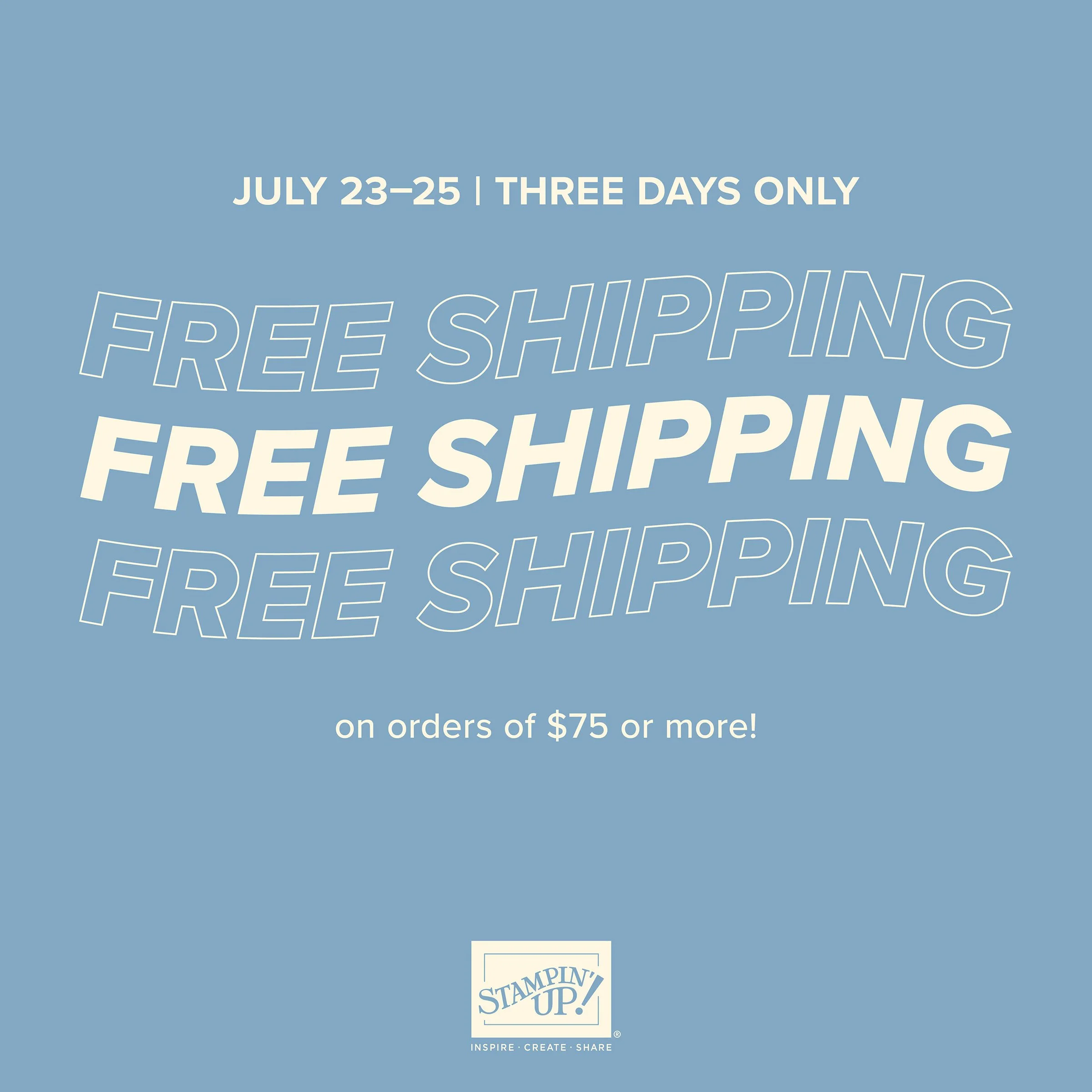 Surprise! It’s time for FREE SHIPPING! Today 23 July 2025 through 25 July 2025, for three days only, you can shop and save on all qualifying orders of $75 or more. What a great way to stock up on all your favorite products from the catalog, Online Exclusives, kits, and more! So start making your wish list now —> Click Here!