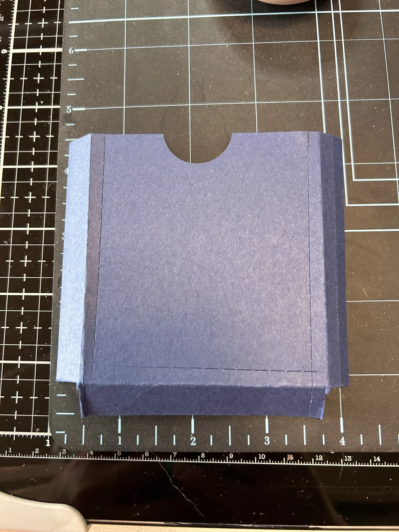 5. At the 3” score line and Score a 2” x 2” square, it will be in the middle of the ½ score lines on the side, approximately ½” in from those, best to see picture.