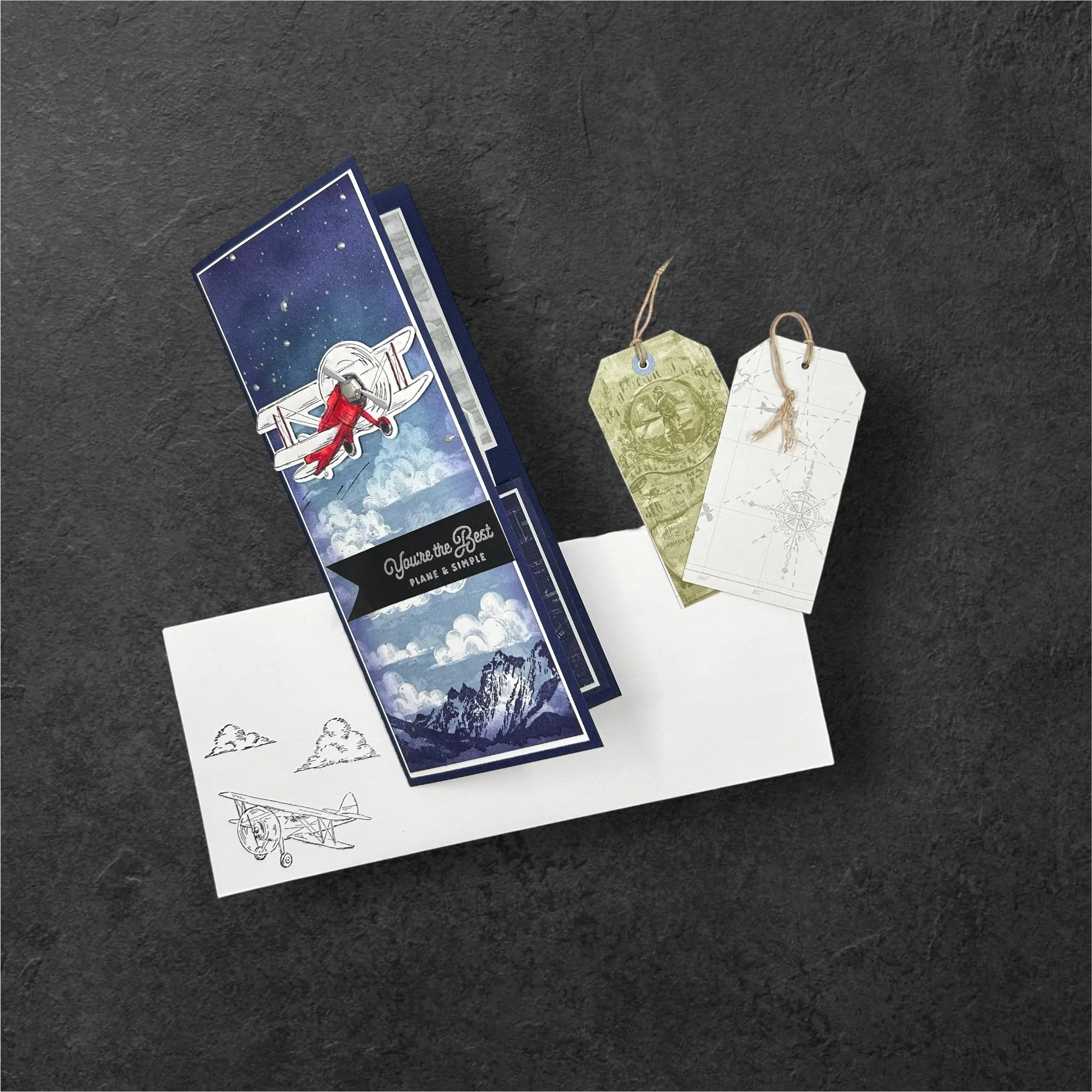 Adhere both white layers to your cardstock bases using foam tape or dimensionals (optional) or just use stamp and seal or mono glue.